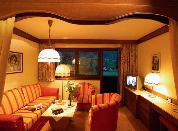 В отеле 100 комфортабельных номеров различных категорий. В номерах – изысканные интерьеры в австрийских традициях, с отделкой из натурального дерева и декоративных тканей, ковровым покрытием на полах, изящной мебелью, изысканными украшениями, с уютных балконов открывается великолепный вид на горные ландшафты.