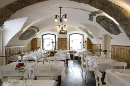 В элегантном ресторане отеля, со сводчатыми потолками и стенами, расписанными старинными фресками и отделанными резными деревянными панелями, предлагаются изысканные блюда традиционной и современной австрийской кухни, в теплое время года столики сервируются на уютной открытой террасе.