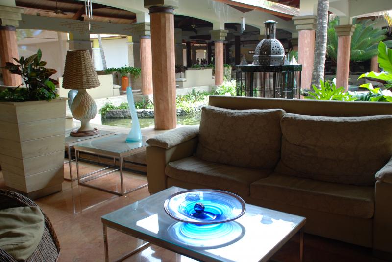 На белоснежном пляже находится гостиная открытой формы X Lounge.