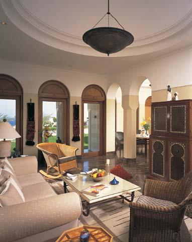 В отеле 102 номера, включая 63 Deluxe Suite, 21 Superior Deluxe Suite, 12 Grand Suite и 6 Royal Suite. Все номера просторные и очень элегантно оформлены в традиционном восточном стиле и поражают богатством цветов и неповторимым разнообразием национальных египетских мотивов. Ванные комнаты переходят в огороженный высокими каменными стенами дворик-патио. От сада под открытым небом гостей отделает только стеклянные стены-панели, что создает чувство легкости, единения с природой.Deluxe Suite (85 кв.м.) — эксклюзивные роскошные виллы, состоящие из спальни и мини-гостиной.