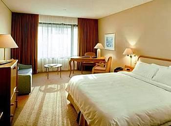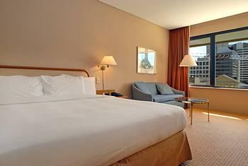 Hilton Guest Room (32 кв.м.) — вид на город; номер обставлен в современном стиле, состоит из спальни с зоной гостиной с софой, имеется большой письменный стол с эргономическим креслом, высокоскоростное подключение к Интернету, игровой центр Sony, мраморной ванной комнаты.
