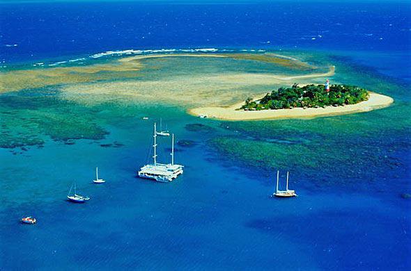 Большой Барьерный Риф - это настоящее чудо природы, хрупкая экосистема, становление которой длилось не один миллион лет. Цепь уникальных в своей красоте и ценности рифов и островов растянулась на 2500 километров и стала домом для более чем 6000 видов представителей флоры и фауны, среди котрых есть редкие и исчезающие, как, например, зеленая морская черепаха. Катер или яхта из Порт Дугласа, Кэрнса или одного из городков между Кэрнсом и Таунсвиллем быстро доставят вас к Рифу, и там, среди коралловых зарослей, можно начать свое знакомство с его уникальной природой. Погружение с аквалангом откроет перед вами чарующий подводный мир: кораллы всех цветов радуги, не менее пестрые тропические рыбы и кристально-чистая вода - все это Большой Барьерный Риф. Ступив на твердую землю одного из островов, вы увидите вечнозеленые деревья , услышите гомон тысяч птиц и шум затерянных в глубине леса водопадов. Практически у каждого острова есть что предложить. Так, для наблюдения за жизнью птиц и тропических лесов лучше всего подойдут Хинчинбрук (Hinchinbrook), крупнейший в мире островной заповедник, остров Данк (Lush Dunk), Херон ( Heron), Фицрой (Fitzroy) и Леди Эллиот (Lady Elliot). Отдельно стоит отметить Уитсандейс, группу из 74.. Круглый год в этом районе стоит теплая тропическая погода со средней температурой 27,4 градуса. Многие острова необитаемы или превращены в национальные парки, но остальные - Уитсандей (Whitsunday), Уайтхевн (Whitehaven), Дейдрим (Daydream), Хук (Hook), Линдеман (Lindeman) и другие всегда готовы принять на свои белоснежные пески посетителей. На острове Лизард (Lizard) вас ждет отличная спортивная рыбалка, ныряние с маской или дайвинг; а на острове Грин - один из самых лучших курортов мира. Эксклюзивный отдых предлагают острова Орфеус (Orpheus) и Дабл (Double).