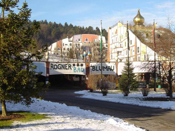 Бад Блюмау (Bad Blumau) — бальнеологический курорт, расположенный между Веной и Грацем, в центре области Штирия. По преданию, в конце XIX века некая нефтяная компания предположила, что на территории маленькой деревеньки Блюмау непременно есть месторождение нефти и газа. Но когда скважина была пробурена, к разочарованию геологов на поверхность вырвался горячий источник. И только через несколько лет в Бад Блюмау построили термальный комплекс, который и прославил никому не известную деревушку на весь мир.