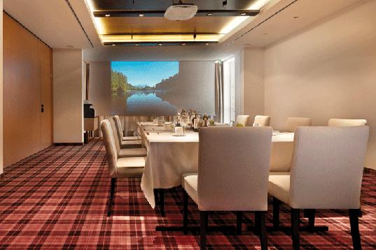 Deluxe Room: 54 м2. Состоит из спальни с двуспальной кроватью и зоной отдыха с диваном, ванной комнаты с ванной и душем, большинство номеров имеют балкон с видом на Альпы и гольф-поле, четыре номера имеют окна с видом на лес. Дополнительно в номере – радио, радиотелефон, телевизор в ванной комнате, биде в туалетной комнате. Размещение – 4 взрослых или 2 взрослых + 2 ребенка.