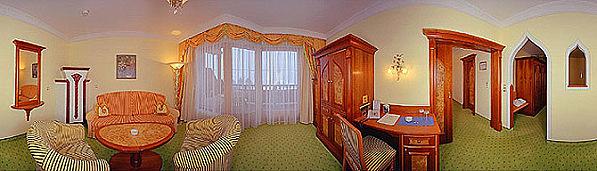 Jungbrunnen Suite Deluxe: 125 м2. Состоит из 2 уровней, включающих: галерею, гостиную с тирольской печью, 2 спальни, 2 ванных комнаты, паровую кабину, просторную террасу на крыше, балкон.