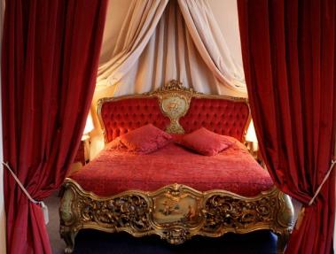 В гостиной с историческими интерьерами и прекрасной живописью на потолке подают различные напитки.