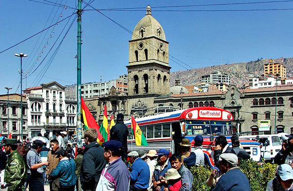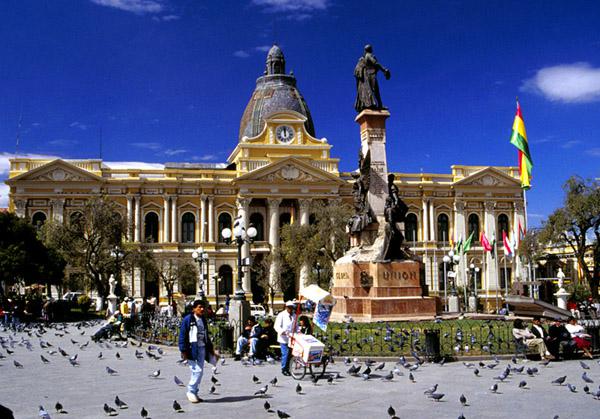 Ла-Пас - политический и коммерческий центр Боливии, местонахождение правительственных учреждений и самая высокогорная столица мира. Это один из самых оригинальных и красивых городов Южной Америки. Сегодня в Ла-Пасе сосредоточено три четверти обрабатывающей промышленности Боливии. Отсюда идут на экспорт кофе, какао, листья коки, цитрусовые, олово, цинк. Ла-Пас – крупный железнодорожный узел, связывающий Боливию с тихоокеанскими портами Чили и Перу, а также с Аргентиной. Ла-Пас (в пер. значит «мир», «покой») был основан в 1548 г. испанским капитаном Алонсо де Мендосой в знак примирения враждовавших предводителей конкистадоров Франциско Писарро и Диего де Альмагро. Город находится на высоте 3660 м над уровнем моря. Адаптироваться к высоте помогает чай из листьев коки. В самой низине долины находится исторический центр и площадь Сан-Франсиско, от которой в разные стороны расходятся и круто взбираются вверх вымощенные кирпичом и булыжником улочки. Самые престижные жилые районы расположенные на высоте 2500 (Зона Сур)утопают в зелени и могут похвастаться интересными особняками. Самый бедный район Альта Ла-Пас расположен на высоте около 4000м. Из большинства районов Ла-Паса хорошо видна покрытая снегом вершина горы Ильимани, высота которой более 6000м. Традиционно центром города считается Пласа Мурильо, где расположен Президентский дворец. Обычно его называют дворец Кемадо, или Сожженный дворец, т.к. с момента его постройки в 1850г. разъяренные толпы народа дважды сжигали его. Окружающие площадь улицы - одни из самых живописных в городе. Например, пешеходная Калье Хаэн, вымощен булыжником и обрамлен хорошо сохранившимися колониальными зданиями. Больше всего привлекает в Ла-Пасе уличная жизнь. На узких улочках, тянущихся вверх вдоль склона холма, позади пласа Сан-Франсиско, всегда много боливийских женщин в ярких многослойных нарядах и шляпах-котелках. Они продают одеяла, орехи, зелень, а для туристов у них всегда найдутся шерстяные свитеры с эмблемами, изображающими гуанако.