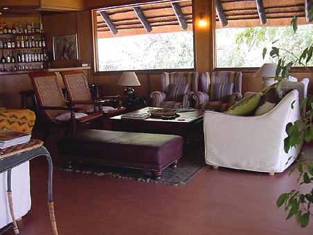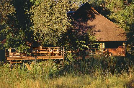 В главном здании лоджа – деревянном бунгало с тростниковой крышей – находятся роскошно обставленная гостиная, библиотека с большой коллекцией книг об африканской природе, экзотический ресторан и изысканный коктейль-бар. Потолочные вентиляторы создают уютную прохладу во всех внутренних помещениях. С широкой общей веранды открываются захватывающие виды на лагуну. Рядом расположен крытый двор «бома» (boma), в котором, при свете большого костра, готовят и подают традиционные африканские ужины.