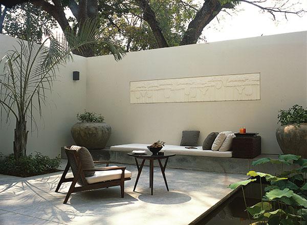 Строил виллу французский архитектор, так что в результате получился очень стильный современный минималистский отель. Атмосфера в отеле камерная и очень респектабельная: в оформлении и отделке использованы дорогие и эксклюзивные материалы. В минималистских интерьерах много черного и белого с добавлением бежевых и серых элементов.