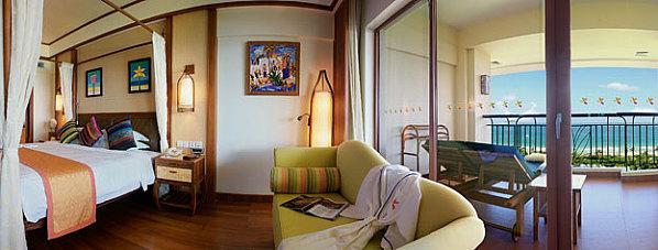 Отель располагает комфортабельными номерами различных категорий, включая Standard Room, Garden Room, Superior Sea View Room, Deluxe Sea View Room, Sea View Suit, Deluxe Sea View Suit – расположенные в здании 1 и Deluxe Mauntain View Room, Grand Superior Sea View Room, Grand Deluxe Sea View Room, Super Sea View Room, Deluxe Mauntain View Suite, Elegant superior Sea View Suite, Elegant Deluxe Sea View Suite, Super Sea View Suite – расположенные в здании 2. В номерах – элегантные интерьеры, сочетающие современный стиль и китайские традиции, с тиковыми полами и отделкой из дерева, изящной мебелью из тика и камыша, изысканными украшениями, уютными балконами с видом на море, сад и горы.