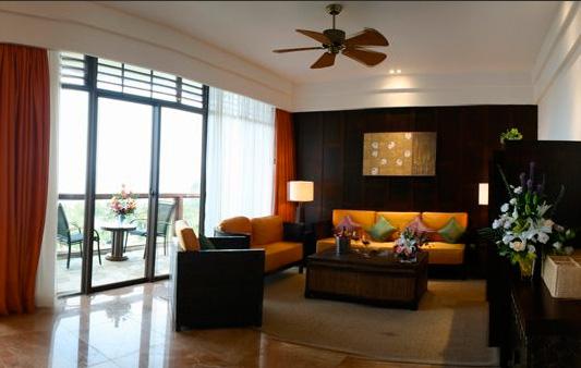 В отеле 502 комфортабельных номера следующих категорий: 58 Garden View Rooms, 67 Lake View Rooms; 333 Sea View Room, Deluxe Sea View Room, Elegant Sea View Room; 8 Garden View Family Suites; 34 Sea View Family Suites, Holiday Sea View Suite, Seasonal Sea View Suite, Mangrove Tree Suite. Интерьеры сочетают современные и традиционные контрастные азиатские мотивы. Панорамные окна, меблированные балконы, оборудованные открытыми душевыми, выходят на тропический сад, озеро или на пляж и на Южно-Китайское море.