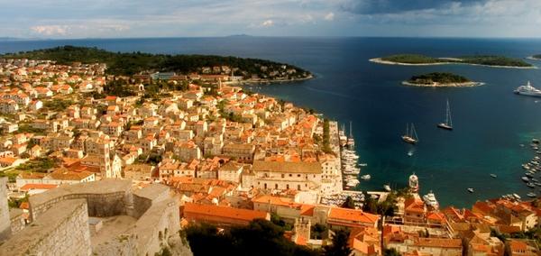Хвар — самый крупный город - остров. На главной площади — собор св. Стефана XVI века. Массивное здание Арсенала XVI-XVII века, на втором этаже которого в 1612 г. был открыт первый в Европе общественный театр. Над городом и бухтой доминирует крепость, возведенная еще венецианцами.