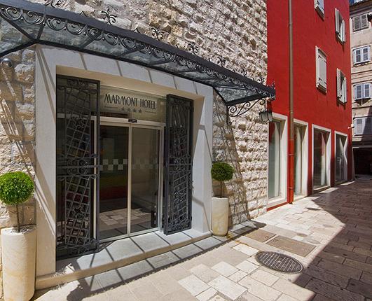 Marmont Hotel Сплит — новый изысканный отель, имеющий уникальное расположение в историческом центре Сплита, на небольшой средневековой площади, рядом с входом во дворец Диоклетиана – древний памятник, входящий в список всемирного наследия ЮНЕСКО. Отель назван в честь знаменитого французского маршала Огюста Фредерика де Мармона, который во время наполеоновской кампании управлял Дубровницкой республикой и первым в XIX веке начал строительство дорог в Далмации. Атмосфера и интерьеры отеля представляют собой гармоничную эклектику шикарного современного дизайна и искусных вкраплений деталей средневекового замка: стильные интерьеры комфортабельных номеров отделаны натуральным деревом, а из их окон открывается чудесный вид на уникальную архитектуру Сплита, в уютном ресторане и лобби-баре декор XXI века соседствует с каменной кладкой XV столетия, а в баре на просторной террасе можно насладиться видом на старинную площадь.