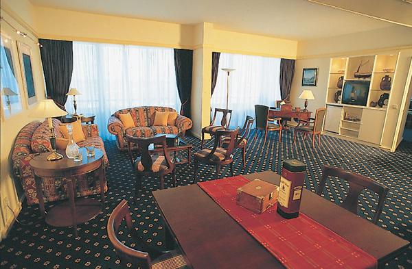 Hermes Presidential Suite: состоит из двух спален, гостиной, 2 ванных комнат и балкона или террасы. Интерьеры роскошно оформлены с использованием кожаной мебели и предметов местного антиквариата.