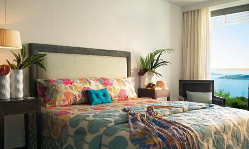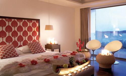 Premier Deluxe Room: расположен на всех этажах, состоит из просторной прихожей с встроенным шкафами, спальни с кроватью king-size или двумя кроватями twin и зоной отдыха, ванной комнаты, отделанной мрамором с отдельной душевой кабиной, выходит на море или сады.