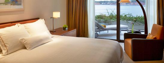 Grand Deluxe Sea-View Room: 44 2. Расположен у пляжа, на первых двух этажах, состоит из спальни с кроватью king-size или двумя кроватями twin, небольшой зоной отдыха и рабочей зоной, ванной комнаты, балкона с видом на залив, пляж и олимпийский бассейн.