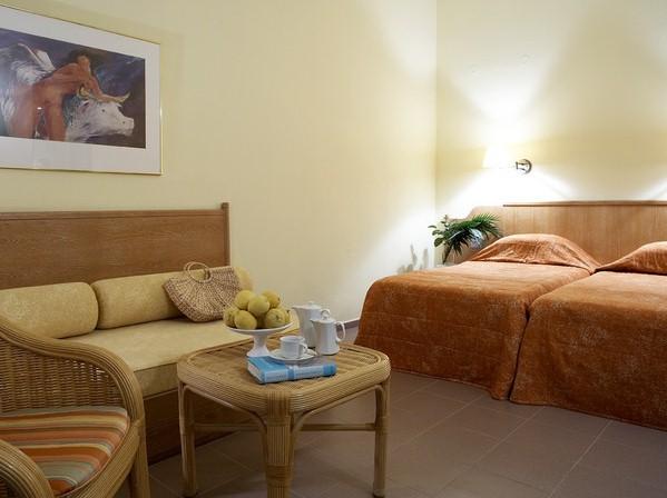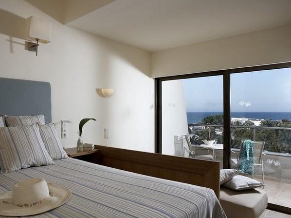 Double Room Sea View: 23,5 м2. Расположен в главном здании, состоит из спальни c двуспальной кроватью и одной или двумя кроватями twin, ванной комнаты, балкона с видом на море.