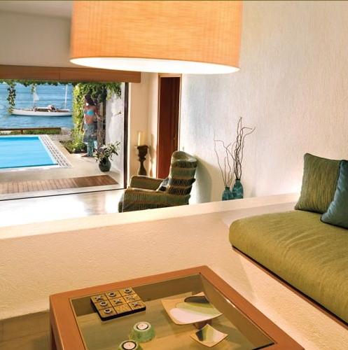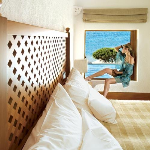 Junior Suite (45/52 м2) — расположен возле частного пляжа, состоит из спальни, гостиной, ванной комнаты с ванной и отдельной душевой кабиной, террасы с садом и подогреваемым бассейном с морской водой, имеет выход к морю.