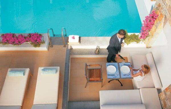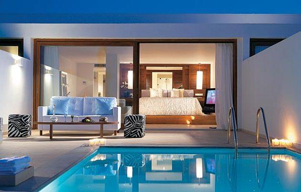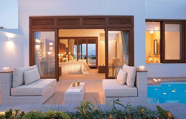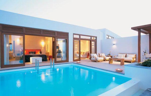 Deluxe Guestroom (private pool and garden): — 31 м2. Расположен на первом этаже крыла Candia, состоит из спальни, ванной комнаты, меблированной террасы (72 м2) с обеденной зоной и бассейном, выходит в сад. В номере LCD TV и спутниковые каналы. Максимальное размещение — 2 человека.