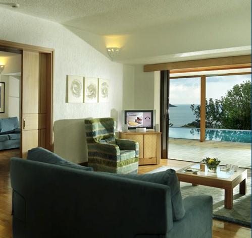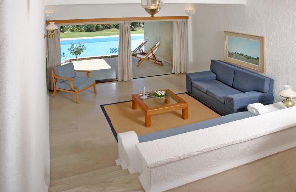 Porto Deluxe Suite with Shared Pool (60 м2) — состоит из спальни, отдельной гостиной, ванной комнаты, большой меблированной террасы с выходом к бассейну с морской водой. Максимальное размещение — 3 взрослых + 1 ребенок.
