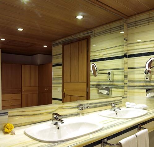 Two Bedroom Porto Presidential Suite (130 м2) — состоит из двух спальных комнат, 2 ванных комнат с джакузи, гостиной, обеденной зоны, террасы с собственным бассейном с морской водой. В номере CD/DVD player. Максимальное размещение — 5 взрослых + 1 ребенок.