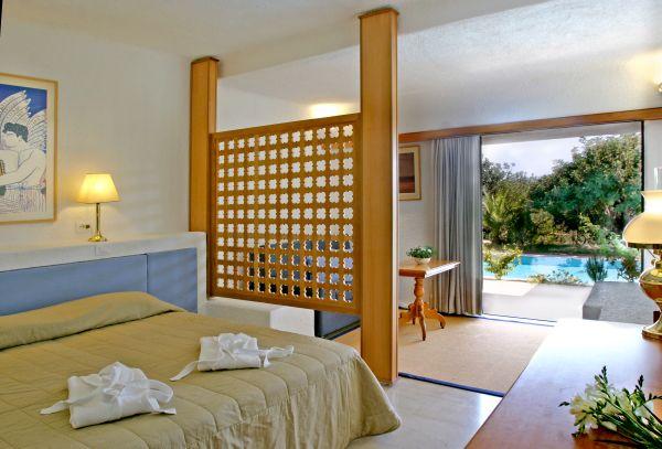 Porto Deluxe Room with Рrivate Pool (47 м2) — состоит из спальни c гостиной зоной, ванной комнаты с отдельной душевой кабиной, меблированной террасы с собственным бассейном с морской водой. Максимальное размещение — 3 взрослых.