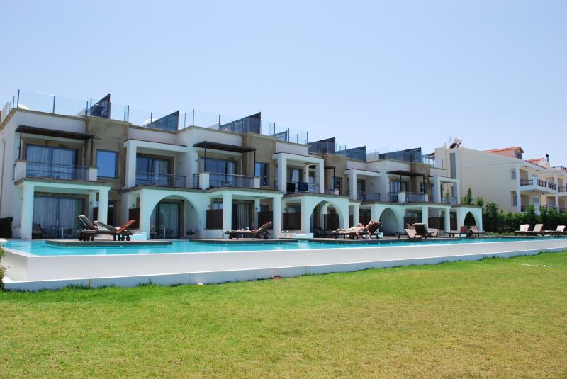 Beach-front Grand Suite: расположен на берегу у моря, на первом или втором этаже, состоит из спальни с гостиной зоной, ванной комнаты с джакузи, террасы с видом на море. Номера, расположенные на первом этаже, имеют выход к бассейну, общему с соседними номерами, номера на втором этаже - персональные бассейны. Максимальное размещение – 3 взрослых или 2 взрослых+2 ребенка.