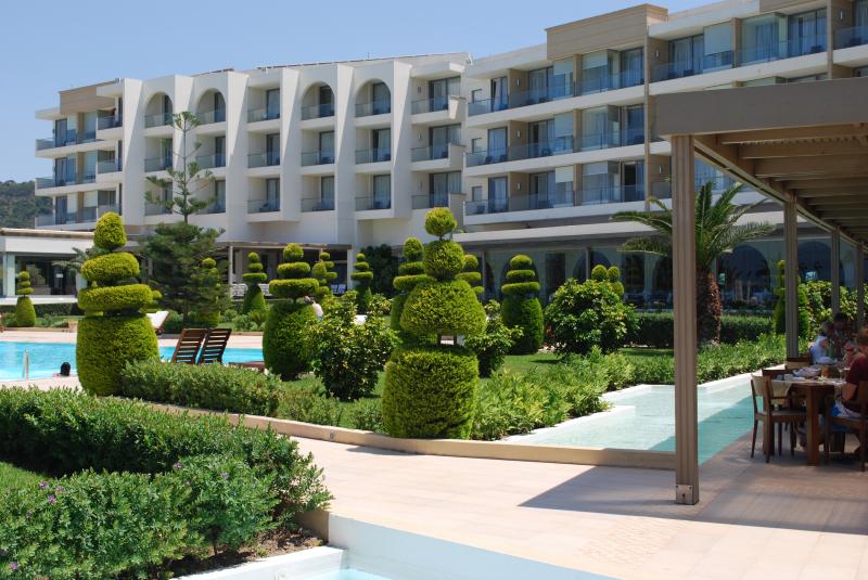 На берегу прозрачного Эгейского моря, в живописном уголке курорта Иксия расположился фешенебельный The Ixian Grand Родос, сочетающий изысканную роскошь с романтической обстановкой и безупречным сервисом. Интерьеры номеров отеля выполнены в элегантном современном средиземноморском стиле и выдержаны в светлых тонах, с балконов открывается чудесный вид на залив Иксия и тропические сады. Также The Ixian Grand Родос располагает эксклюзивными номерами категории Grand Suite, гостям которых предложено VIP обслуживание, включая персональные бассейны, отдельные ресторан и бар. К услугам гостей отеля — 2 бассейна, 2 ресторана, где подаются деликатесы средиземноморской и греческой кухонь, 2 уютных бара, конференц-зал, библиотека, магазины. The Ixian Grand Родос обеспечивает великолепные условия для отдыха, дополненные атмосферой покоя и изумительной красотой древнего Родоса.