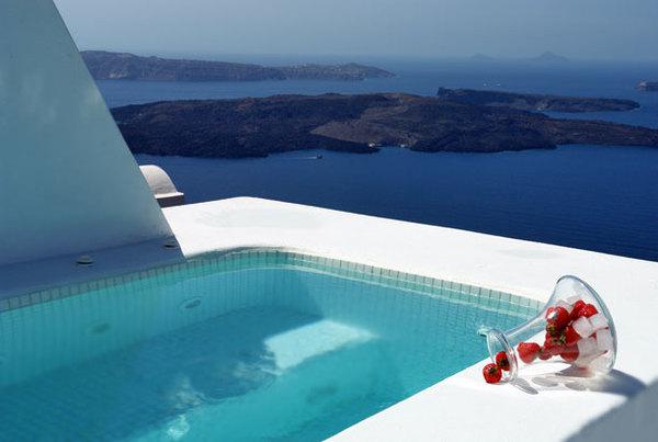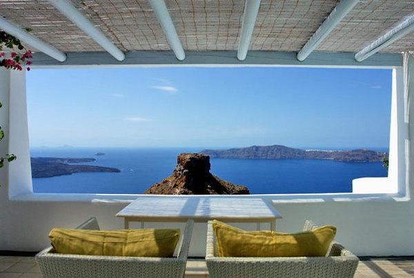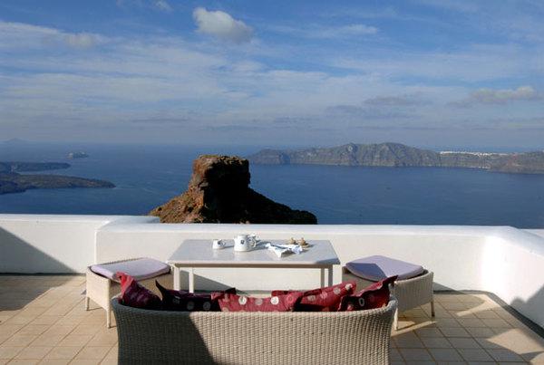 Отель расположен на западном побережье острова Санторини в поселке Имеровигли. Небольшой, но уютный комплекс напоминает греческую деревеньку с небольшими белыми домиками. Отель находится на крутом скалистом холме, откуда открывается вид на море, а также на кальдеру и три вулканических острова. Достопримечательность поселка — венецианский замок Скарос. Изюминкой отеля является роскошный номер-люкс с собственным бассейном на веранде номера. В отеле есть открытый бассейн, библиотека, массажный кабинет, интернет-зал, ресторан и бар.