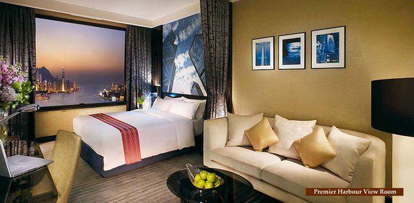 Premier Harbour View Suite: 94 м2; эксклюзивный угловой номер; состоит из спальни с кроватью king size или двумя кроватями twin, просторной гостиной со столовой зоной, ванной комнаты, помещения для дворецкого (во многих номерах); номер с панорамным видом на район Central, гавань Виктория и на полуостров Kowloon. Максимальное размещение — 3 взрослых или 2 взрослых + 1 ребенок.