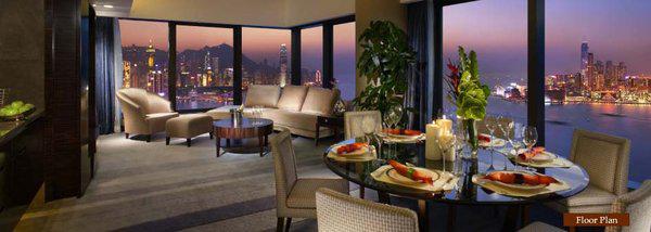 Presidential Suite: 160 м2; состоит из спальни с кроватью king size или двумя кроватями twin, роскошной гостиной со столовой зоной, встроенной кухни; номер с панорамным видом на гавань Виктория и на полуостров Kowloon. Максимальное размещение — 3 взрослых или 2 взрослых + 1 ребенок.