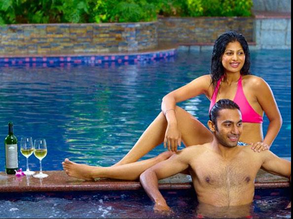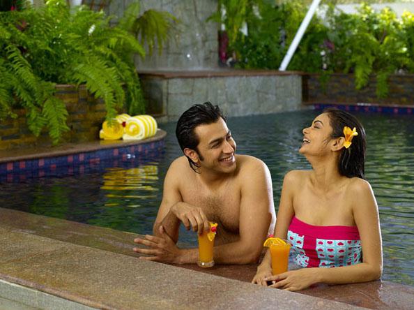 MEANDERING POOL VILLAS /POOL DUPLEX VILLAS — номера в керальском стиле, с видом на сад и бассейн, состоят из спальни с гостиной зоной, имеют прямой выход к «меандрирующему» бассейну длиною 250 м из частной ванной комнаты.