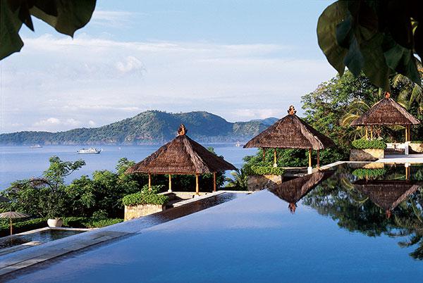 Среди тропических садов, на живописном холме, откуда открывается великолепный вид на пролив Lombok, рядом с белоснежным пляжем, омываемом прозрачными водами Индийского океана, расположился Amankila, воссоздающий элементы легендарного дворца Karangasem, руины которого находятся недалеко от отеля. Номера отеля располагаются среди густых зарослей, в коттеджах, соединенных лестницами и дорожками, и выполненных в традиционном индонезийском стиле, с крышами из ветвей иланг-иланг и уютными внутренними двориками. В просторных, с высокими потолками, номерах – элегантные интерьеры, с отделкой из тикового дерева и редких пород камня, изящной мебелью, изысканными произведениями искусства местных мастеров, просторными террасами с видом на пышные сады и море. На территории отеля находятся: трехуровневый бассейн, террасами спускающийся с холма, бассейн на пляже, центр водного спорта, предлагаются занятия йогой, велосипед, морские прогулки, развлекательные и экскурсионные программы. Массаж и СПА процедуры предлагаются гостям в специальном массажном павильоне, в номерах и в пляжном клубе. В основном ресторане отеля предлагается разнообразие блюд западной и индонезийской кухонь, рядом открыт бар. На террасе у бассейна подаются завтраки и обеды, представляющие блюда интернациональной и местной кухонь. В баре пляжного клуба предложен большой выбор легких закусок, салатов и различных напитков. А в библиотеке девушки в национальных саронгах сервируют традиционный чай с домашней выпечкой. К услугам гостей – галерея-магазин сувениров, библиотека, Интернет-уголок, павильон для пикников Tirta Sari, автомобильная парковка. Amankila сочетает элегантный комфорт, разнообразие услуг и приверженность историческим и культурным традициям древнего острова Бали.