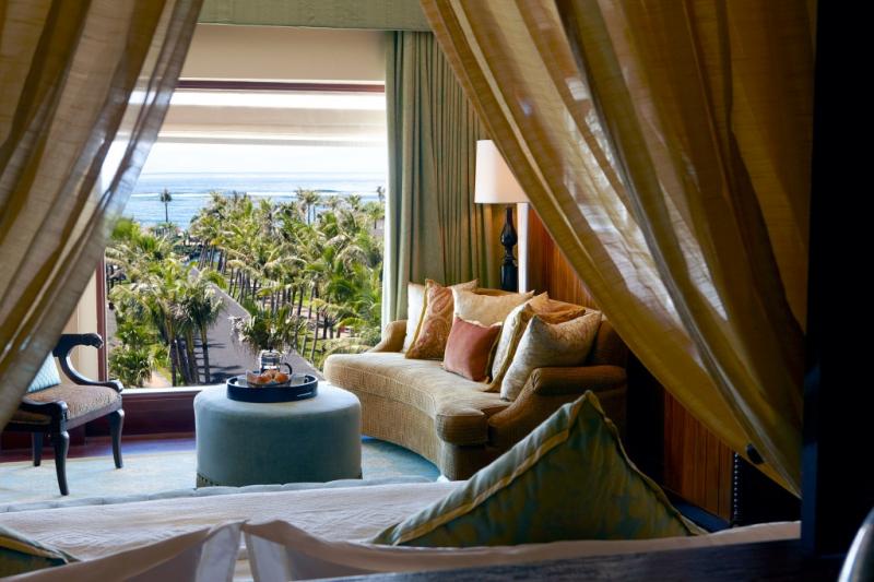 St. Regis Ocean View Suite: 92 м2. Расположен на верхнем этаже, над лобби, включает прихожую, спальню, гостиную с обеденной зоной, гардеробную, ванную комнату, просторный балкон,имеет панорамный вид на живописную территорию курорта. Максимальное размещение - 2 взрослых + 2 ребенка (0-11 лет) или 3 взрослых(одна дополнительная кровать).