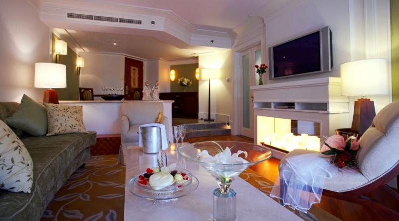 В каждом номере: кондиционер, телевизор с плазменным экраном, телефон, доступ в Интернет, DVD/CD player, сейф, мини-бар, в ванной комнате, отделанной мрамором – большая угловая ванна, душ, фен, халаты, тапочки.