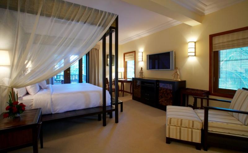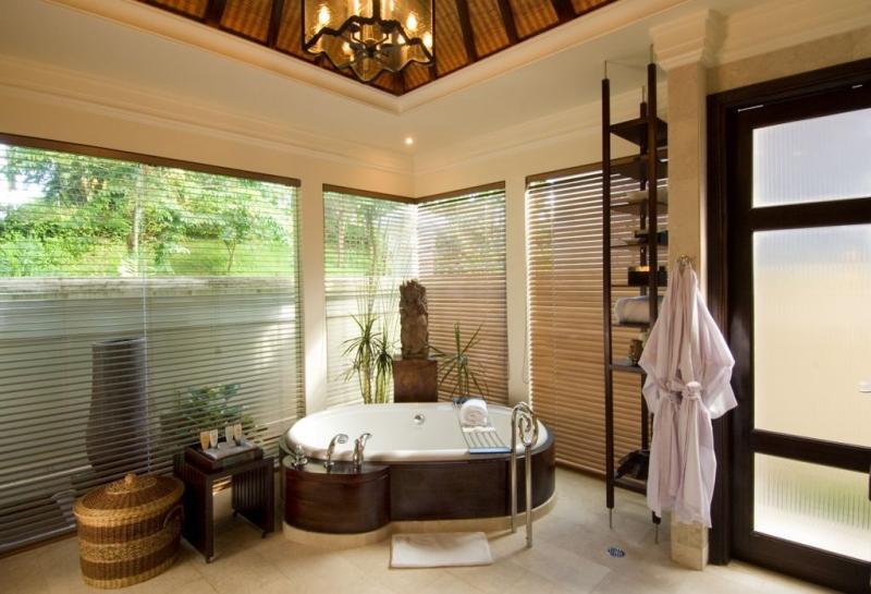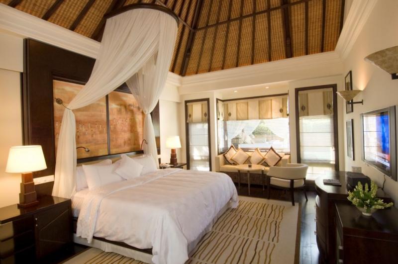 Изысканные интерьеры номеров сочетают элегантный современный стиль Бали, колорит острова и отделку из эксклюзивных материалов: редкая порода местного камня Palimanan, полы из полированного тикового дерева, устланные коврами ручной работы, великолепные этнические ткани и изделия местных умельцев, с балконов и террас открываются восхитительные виды на тропические сады и живописные лагуны. Гостям всех номеров предоставляются услуги дворецкого.