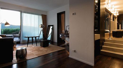 Gallery Suite: 40 м2. Выполнен в минималистском стиле, воссоздающем образ галереи SoHo, украшен большими цветными фотографиями, состоит из гостиной, спальни, ванной комнаты, гардеробной, мини-бассейна с водопадом и отделкой из венецианской мозаики Bisazza, большой деревянной террасы с панорамным видом на гольф-поле.