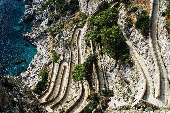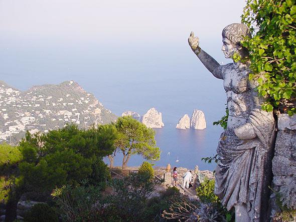 Капри — живописный скалистый остров расположен у южного берега Неаполитанского залива, в 36 км от Неаполя. Капри имеет репутацию шикарного курорта и излюбленного места отдыха знаменитостей со всего мира. Пейзажи этого курорта неповторимы. Вид на Неаполитанский залив с очертанием вулкана Везувий поражает воображение. Добираться до острова очень удобно — каждый час из порта Неаполя до острова идет катер. Самая высокая точка острова — гора Монте Соларо (589 м). Чем ниже к воде, тем положе становятся холмы, образуя два обширных плато, разделенных горной цепочкой (между портами Марина Гранде и Марина Пиккола). Основная часть береговой линии представляет собой крутые, зазубренные скалы с бухтами, гротами, ущельями, выступающими из воды величественными рифами. На Капри долго жил Максим Горький, которого навещали Федор Шаляпин и Луначарский.