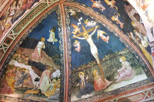 По соседству с пинакотекой виден готический собор XIII-XIV веков. Нарядный фасад оформлен Джованни Пизано в стиле французской готики. Двухцветная мраморная облицовка наружных стен находит свое продолжение в интерьере, где даже пол инкрустирован мрамором. Всего насчитывается 56 инкрустаций. В здании работает музей строительства собора с прекрасной обзорной террасой.