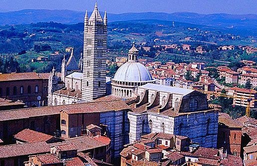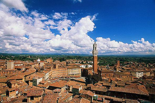 Сиена, город, не похожий ни на любой другой в Италии. Со средневековых времен он сохранил свой первоначальный облик суровой недоступности. Улицы вымощены кирпичом и камнем. Нехарактерные для маленьких провинциальных городков высокие здания, украшенные изящными двух- и трехчастными окнами и стрельчатыми арками. Узкие проулки практически лишены растительности, но воздух здесь удивительно чистый, а теснота абсолютно не ощущается, — городской центр закрыт для большинства видов транспорта.