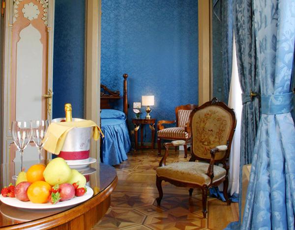 Специально для них приготовлены 14 номеров различных категорий, украшенных фресками и обставленных антикварной мебелью XVIII-XIX вв. Хотя интерьеры номеров имеют индивидуальный дизайн, все помещения объединены в единый гармоничный ансамбль, который и придает отелю его непередаваемый колорит.