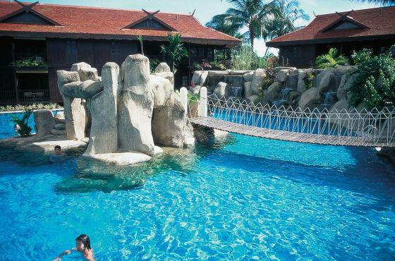 Отель построен в стиле традиционных малайских шале, богато украшенных резьбой