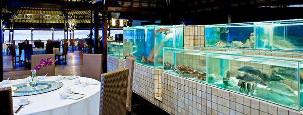 Ресторан Alu Alu Seafood специализируется на блюдах китайской кухни из свежих морепродуктов, доставленных с собственной рыбной фермы отеля.