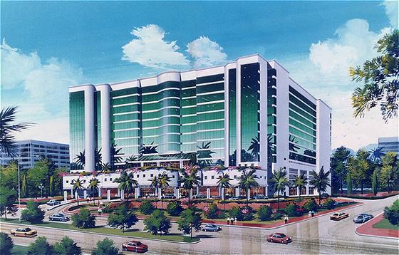 собой многоэтажное здание, расположенное недалеко от береговой линии в
