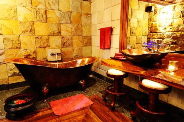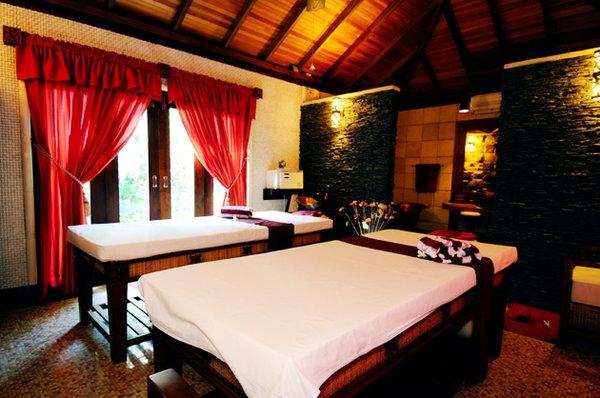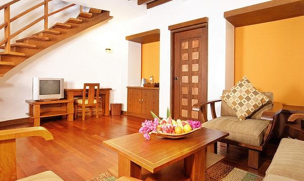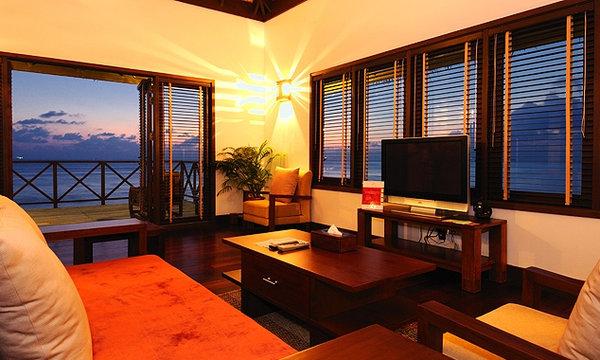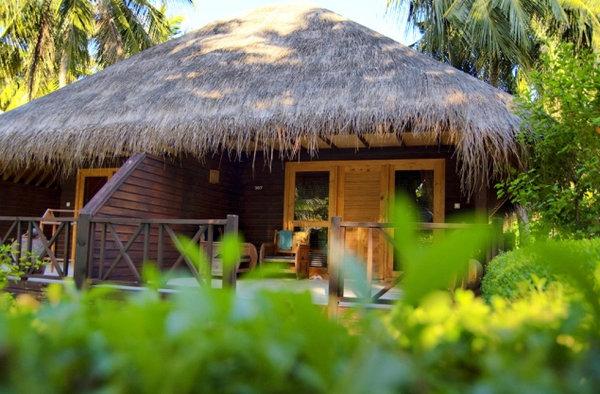 Jacuzzi Beach Villa: 58 м2, расположена в южной части острова на пляже, состоит из двух этажей; на 1-м этаже — гостиная, ванная комната, терраса с джакузи, на втором — спальня и балкон.