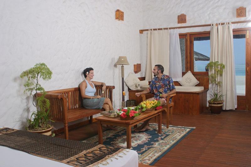 24 Over Water Suites (85 кв.м) — Индивидуальные бунгало. Отдельные спальня и гостиная. Макс кол-во чел: 3 взр или 2 взр + 1 реб. В бунгало: