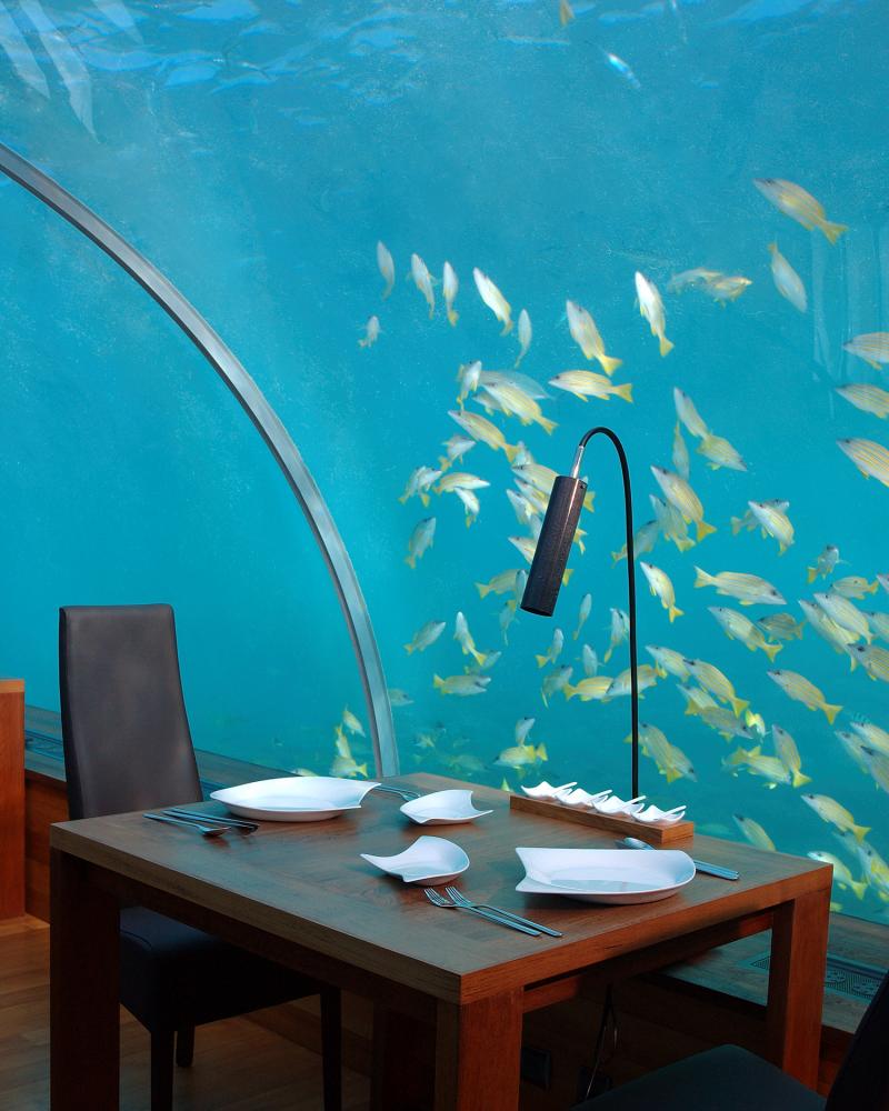 В ресторане Atoll Market предложено разнообразие 8 кухонь со всех уголков мира, включая японское sushi, индийское карри и итальянскую пиццу.Уникальный ресторан-аквариум Ithaa Undersea расположен на глубине 5 м у кораллового рифа, здесь можно не только отведать блюда мальдивской и европейской кухонь, но и понаблюдать за жизнью подводных обитателей. Дети до 12 лет не допускаются.
