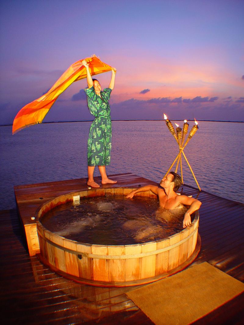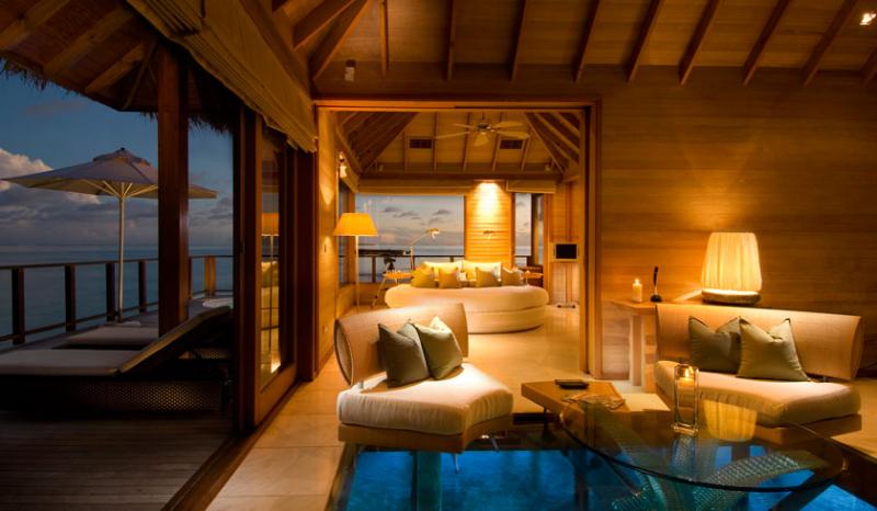 Sunset Water Villa: (250 кв.м) — расположена на сваях над водой в уединенном уголке лагуны, состоит из 2 спален, гостиной со стеклянным полом, чтобы можно было наблюдать подводный мир, ванной комнаты, террасы с открытой джакузи, зоной отдыха и спуском в воду. Через огромные панорамные окна можно наблюдать закат солнца с кровати, которая вращается на 180 градусов. Также в номере есть домашний кинотеатр, 2 больших телевизора с плоским экраном. Максимальное размещение - 6 человек.