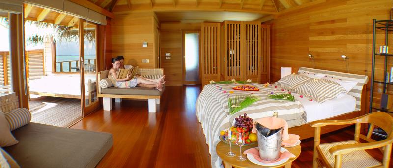 Superior Water Villa: (74 кв.м) — расположена на сваях над водой лагуны, состоит из спальни с гостиной зоной, ванной комнаты с гидромассажной ванной, террасы с зоной отдыха и спуском в воду. Максимальное размещение - 3 взрослых.