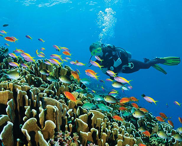 В баре Blu предлагаются соки из экзотических фруктов, тропические коктейли и прохладное коксовое молоко.